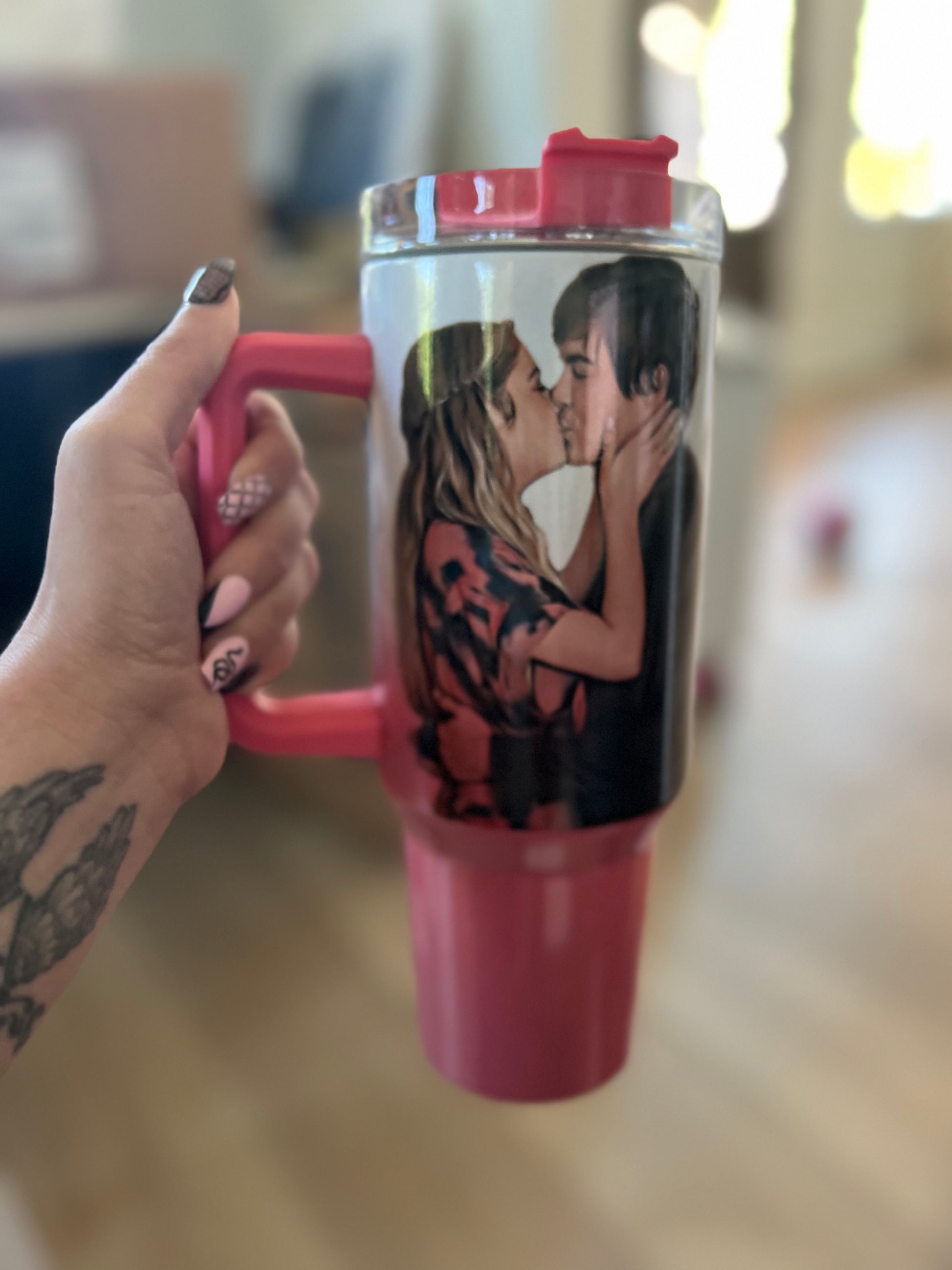 ~Please hand wash your tumblers. High heat is used to transfer the image to the tumbler. If your dishwasher is cleaning at a high heat, you run the risk of "burning" the image off of your tumbler. Although dishwashers may not get as hot as need to burn it, we recommend not taking the risk of ruining your item.